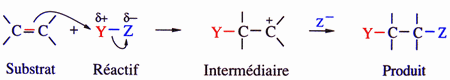 | Par exemple l'addition des halogènes sur le