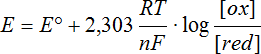 + 2e- Le potentiel d'un couple dépend de la concentration du réducteur et de l’oxydant, de la pression et de la température. On définit Eo comme étant le potentiel normal aux conditions standards de 1 atm, 25°C et pour des concentrations de l’oxydant et du réducteur de 1mol/L. Par conventions, on écrit les équations des couples redox comme des réductions. On peut ainsi classer les pouvoirs oxydant et réducteur, on appelle ceci la série électrochimique. Cette table de potentiel permet de prévoir ce qui va se passer en cas de contact entre deux substances ainsi que que la différence de potentiel mise en jeux. N.B.* Pour trouver les valeurs de potentiels dans d'autres conditions, on utilise l'équation de Nernst: