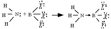 La deuxième écriture est d'autant plus peu valable qu'elle ne rend pas compte de la réactivité du BF3 avec l'ammoniac: |