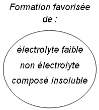 + Cl- La première équation est l'équation moléculaire, la deuxième est l'équation ionique. Formation d'un électrolyte faible ou d'un non électrolyte Si on trouve, dans une solution, des ions susceptibles de former un électrolyte faible, celui-ci se forme : KF et HCl sont deux