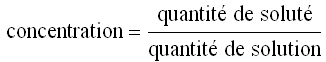 De nombreuses réactions sont effectuées en solution plutôt qu'à partir de substances pures. Il est donc indispensable d'avoir une connaissance exacte de la quantité de soluté (substance dissoute) qui se trouve dans un volume donné de solution (liquide + soluté), c'est-à-dire la concentration de la solution. On peut exprimer la concentration: