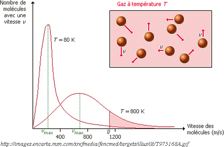Toutes les molécules d'un gaz n'ont pas la même vitesse et la distribution de la vitesse change avec la température :