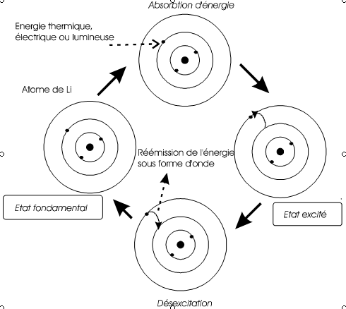 un atome soumis à un apport d'énergie (=excitation), un électron peut