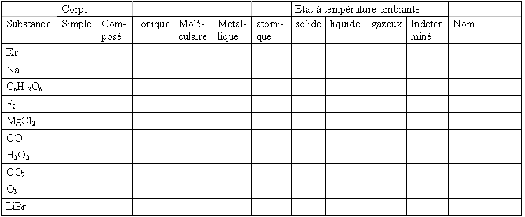 Corps atomiques Ce sont typiquement les gaz rares. Ils sont parfois considérés comme des corps covalents car à l'état solide, c'est à dire à très basse température, la cohésions est assurée par des forces de Van der Waals. Exercices Exercice 1: Un corps